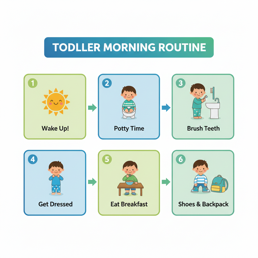 Use a visible morning routine checklist for kids and encourage consistency with positive reinforcement.
